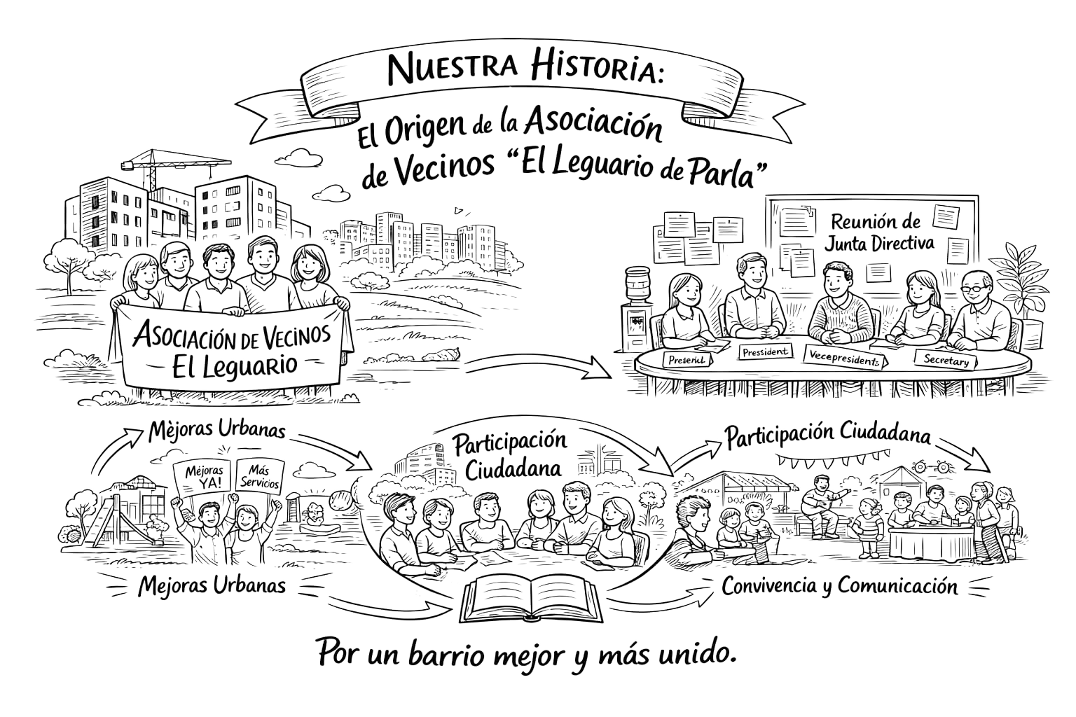 La Asociación de Vecinos El Leguario de Parla nació de la iniciativa de un grupo de residentes comprometidos con la mejora y el bienestar de su barrio. A medida que la zona de El Leguario crecía, también lo hacía la necesidad de contar con una entidad que diera voz a las preocupaciones, propuestas y proyectos de quienes la habitan. Fue así como varios vecinos decidieron organizarse y dar forma a una asociación sin ánimo de lucro, abierta, plural y centrada en la convivencia.